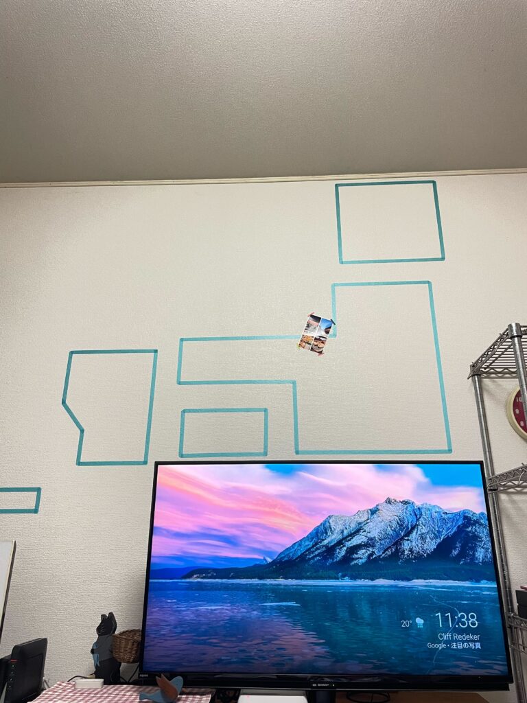 マスキングテープで日本地図をザックリ形どって、旅行で撮った写真をエリアごとに貼っていくんです♪